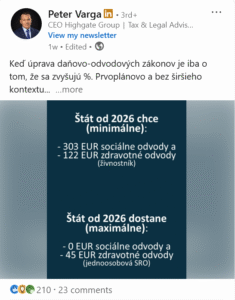 Domov > Linkedin články > Keď úprava daňovo-odvodových zákonov je iba o tom, že sa zvyšujú %. Prvoplánovo a bez širšieho kontextu…